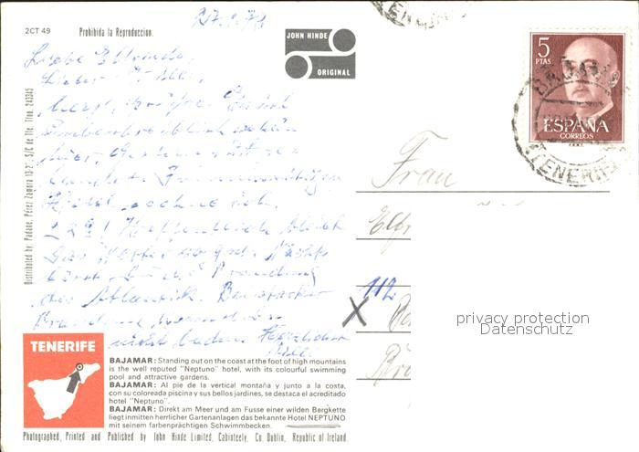old postcard Bajamar Tenerife Hotel Schwimmbad postalisch gelaufen Erhaltung siehe scans