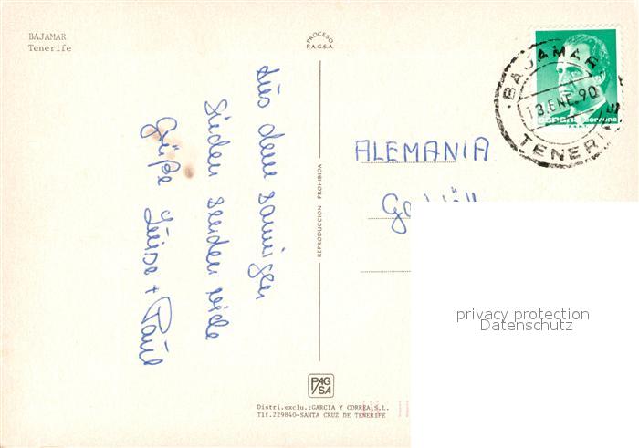 old postcard Bajamar Tenerife Kuestenpanorama Fliegeraufnahme postalisch gelaufen Erhaltung siehe scans [FriedD77]