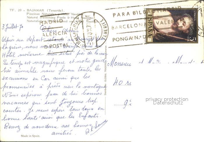 old postcard Bajamar Tenerife Pool und Nachtclub postalisch gelaufen Erhaltung siehe scans