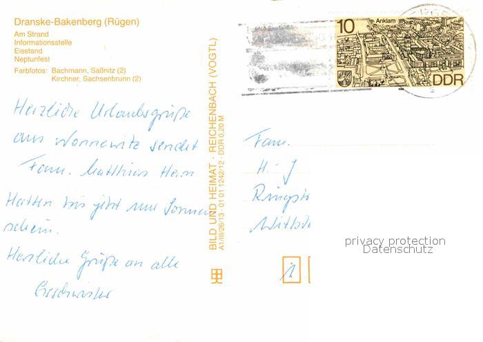 72890588 alte Postkarte Bakenberg Am Strand Infostelle Eisstand Neptunfest postalisch gelaufen Erhaltung siehe scans [WerneD78] KatCode: 11110013061008