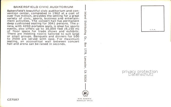 72486888 Bakersfield California Civic Auditorium postalisch nicht gelaufen Erhaltung siehe scans KatCode: 14140050000000