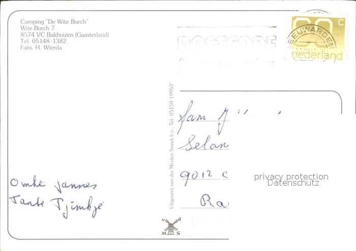 old postcard Bakhuizen Camping De Wite Burch postalisch gelaufen Erhaltung siehe scans