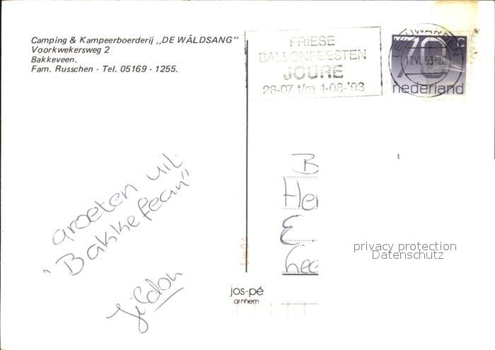 old postcard Bakkeveen Camping und Kampeerboerderij De Waldsang Fliegeraufnahme postalisch gelaufen Erhaltung siehe scans