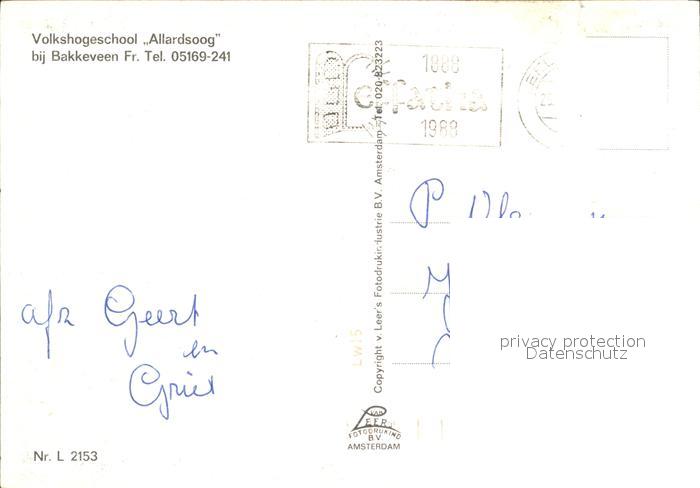 old postcard Bakkeveen Volkshogenschool Allardsoog postalisch gelaufen Erhaltung siehe scans