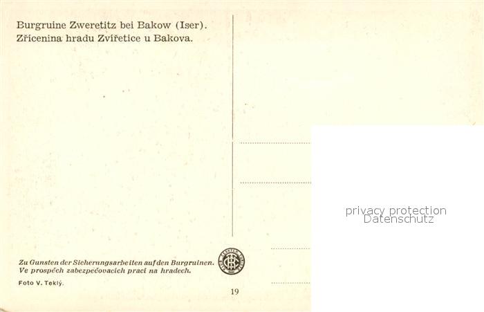 Bakov Jizerou Burgruine Zweretitz postalisch nicht gelaufen Erhaltung siehe scans [LiesaD40]
