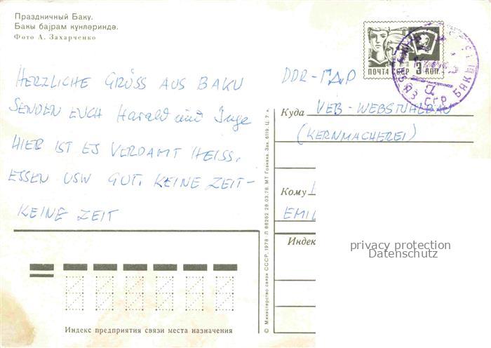 74041996 old postcard Baku Aserbaidschan Feier Baki Bajran Kunlerinde postalisch gelaufen Erhaltung siehe scans [IrynaD87] KatCode: 13030
