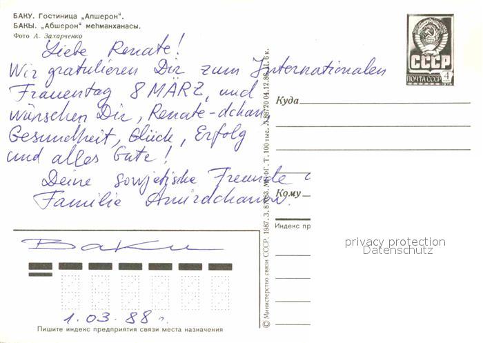 Baku Hotel Apscheron postalisch nicht gelaufen Ganzsache (eingedruckte Briefmarke) Erhaltung siehe scans [NatalD47]