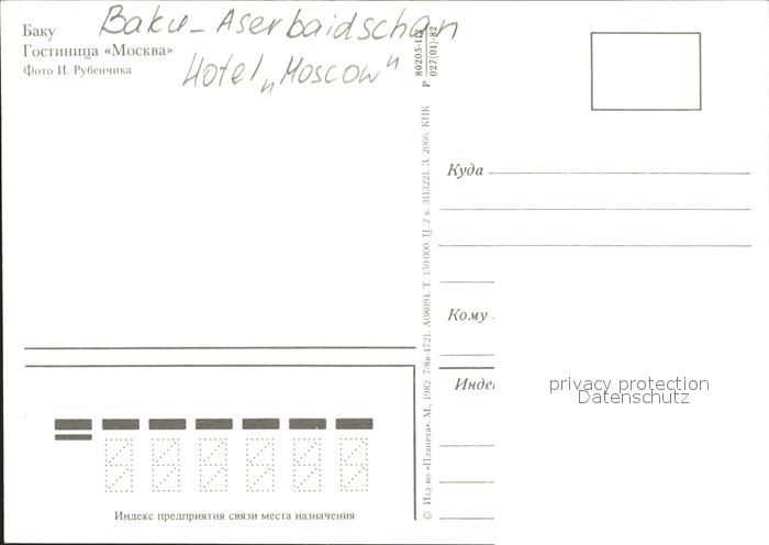 Baku Hotel Moscow postalisch nicht gelaufen Erhaltung siehe scans