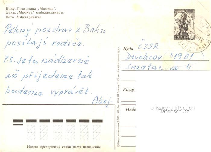 old postcard Baku Hotel Moskau postalisch gelaufen Erhaltung siehe scans [DarjaD84]