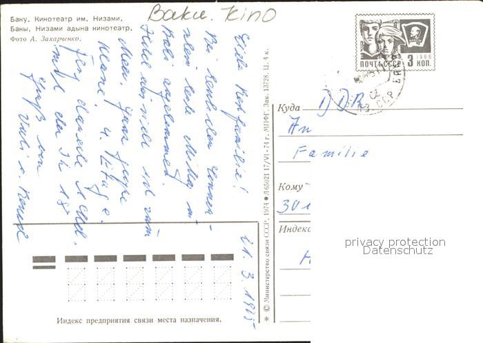 alte Postkarte Baku Kino postalisch gelaufen Erhaltung siehe scans