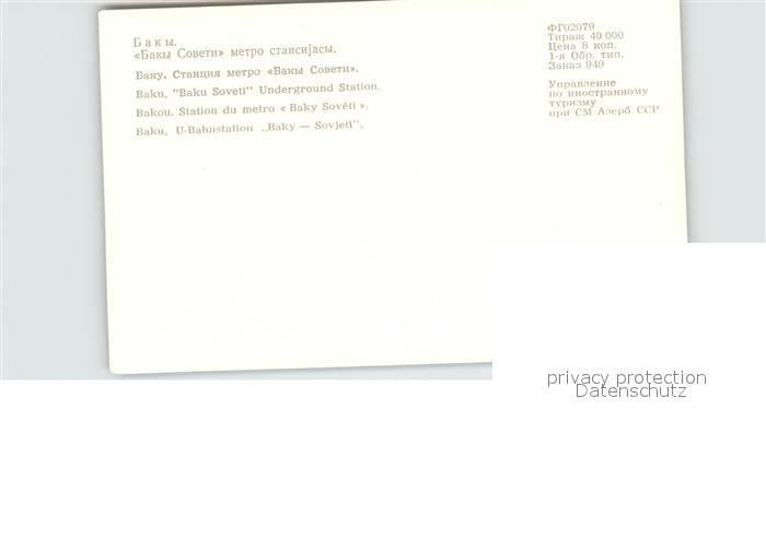 Baku U Bahnstation Baky Sovjeti postalisch nicht gelaufen Erhaltung siehe scans