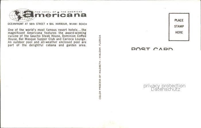 72311655 Bal Harbour Hotel Americana Beach aerial view postalisch nicht gelaufen Erhaltung siehe scans KatCode: 14140110000000