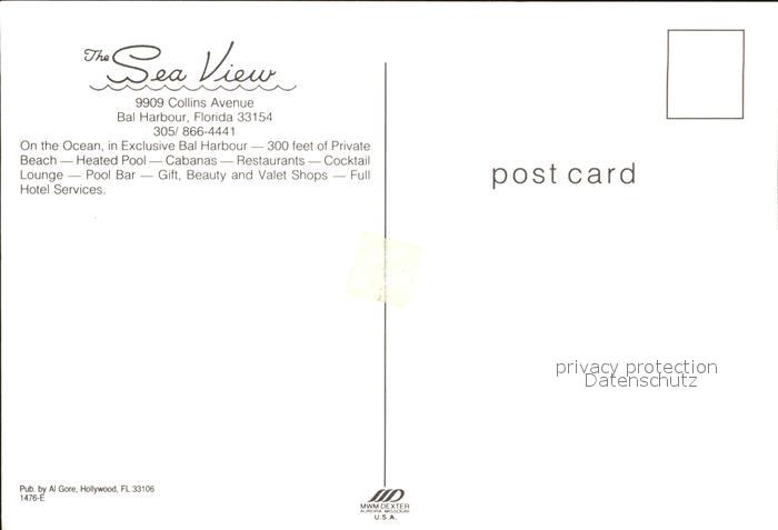 72331934 Bal Harbour Hotel The Sea View postalisch nicht gelaufen Erhaltung siehe scans KatCode: 14140110000000