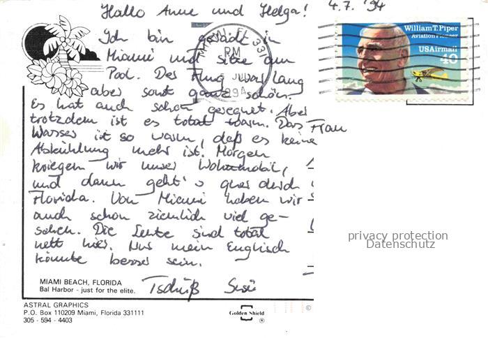74040377 old postcard Bal Harbour Miami Beach USA Panorama Atlantikkueste Strand postalisch gelaufen Fliegeraufnahme Erhaltung siehe scans [FriedD77] KatCode: 14140110000000