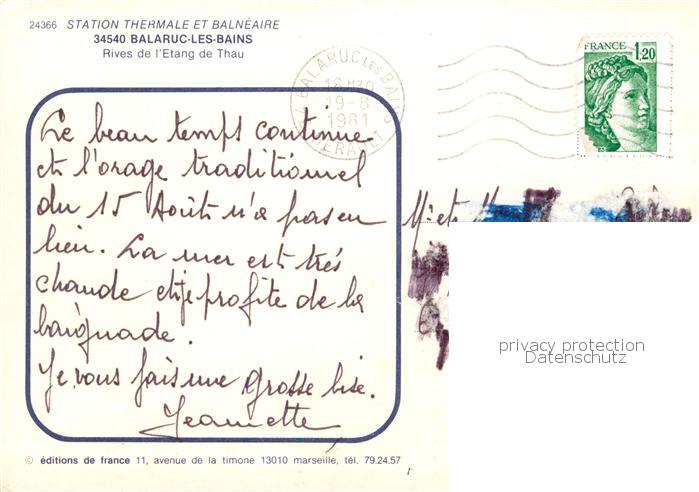 13847378 Balaruc-les-Bains 34 Herault Rives de l Etang de Thau postalisch gelaufen Erhaltung siehe scans [FriedD77] carte postale Frie Katcode 11170034334023