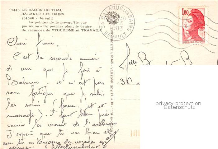 13580762 carte postale Balaruc-les-Bains La pointex de la presqu ile vue par avion Centre de Vacances de Tourisme et Travail postalisch gelaufen Erhaltung siehe scans [FriedD77] KatCode: 11170034334023