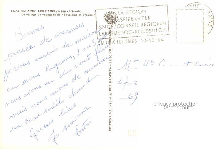 12878361 carte postale Balaruc-les-Bains Tourismuszentrum postalisch gelaufen Erhaltung siehe scans [AndreD76] KatCode: 11170034334023