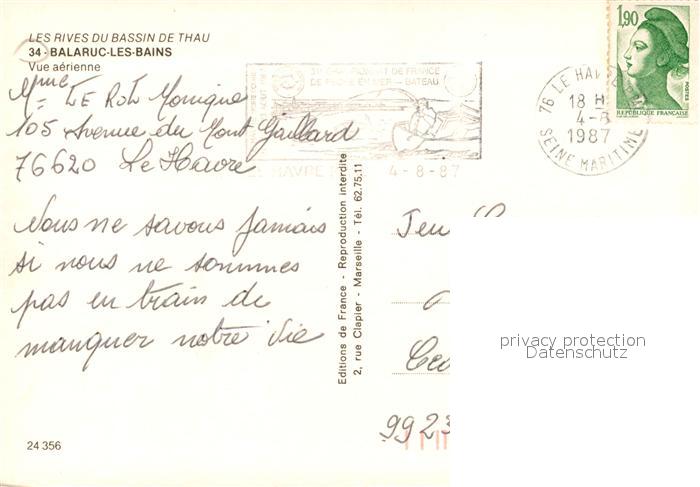 13235707 carte postale Balaruc-les-Bains Vue aérienne Collection Les Rives du Bassin de Thau postalisch gelaufen Erhaltung siehe scans [FriedD77] KatCode: 11170034334023