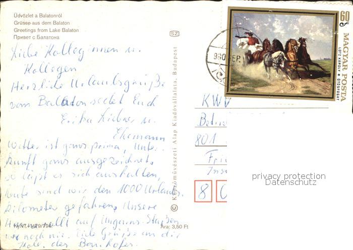 old postcard Balaton Plattensee Hotel Restaurant Strandpromenade Segeln postalisch gelaufen Erhaltung siehe scans