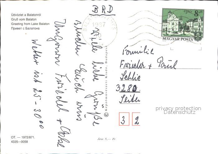 old postcard Balaton Plattensee Ortsansichten Skulpturen postalisch gelaufen Erhaltung siehe scans [LiesaD40]