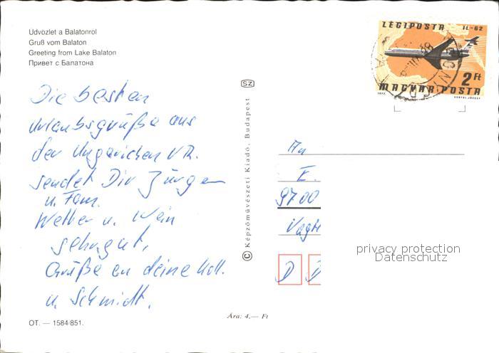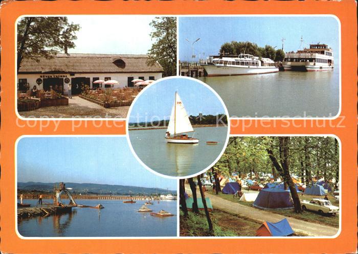 old postcard Balaton Plattensee Restaurant Fahrgastschiffe Panorama Zeltplatz postalisch gelaufen Erhaltung siehe scans