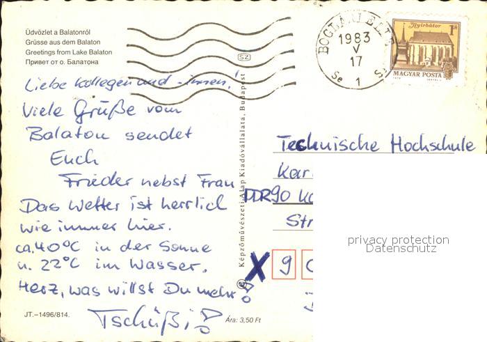 old postcard Balaton Plattensee Segelboote Luftaufnahme Abendstimmung postalisch gelaufen Erhaltung siehe scans