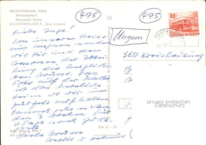 old postcard Balatonaliga Erholungsheim postalisch gelaufen Erhaltung siehe scans