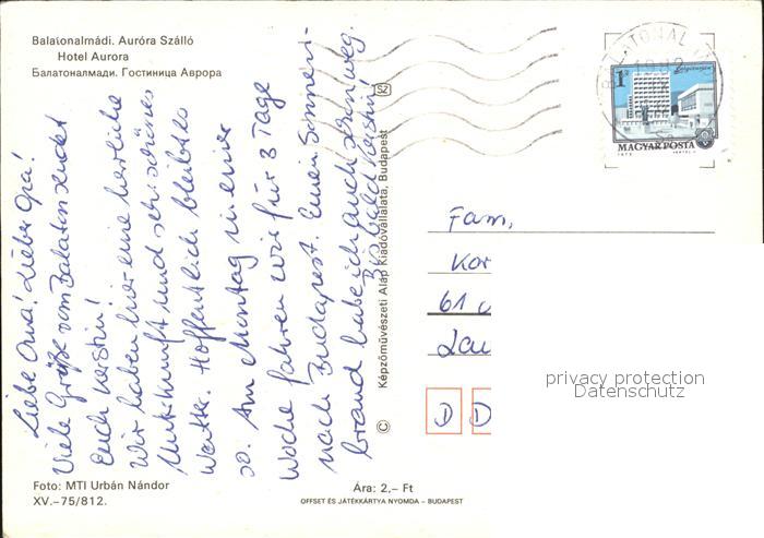 old postcard Balatonalmadi Aurora Szallo Hotel postalisch gelaufen Erhaltung siehe scans