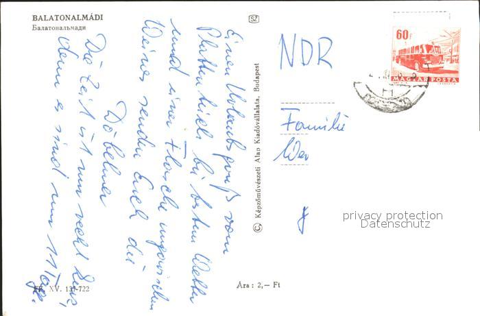 old postcard Balatonalmadi Brunnen Segelboot Gebaeude postalisch gelaufen Erhaltung siehe scans