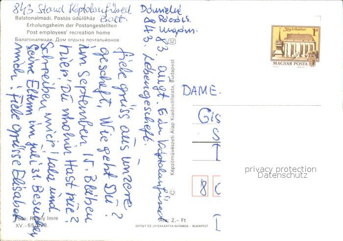 Balatonalmadi Erholungsheim der Postangestellten postalisch nicht gelaufen Erhaltung siehe scans