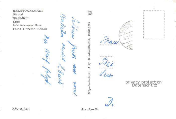 34143552 old postcard Balatonalmadi HU Strand Strandbad am Plattensee postalisch gelaufen Erhaltung siehe scans [FriedD77] KatCode: 11550