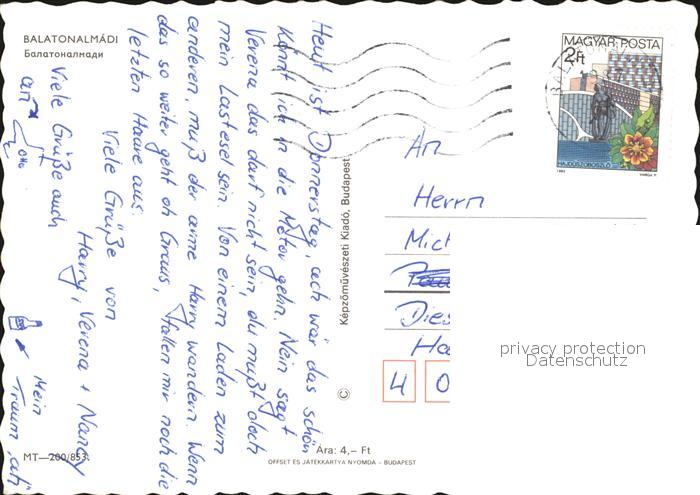 old postcard Balatonalmadi Stadtansichten postalisch gelaufen Erhaltung siehe scans