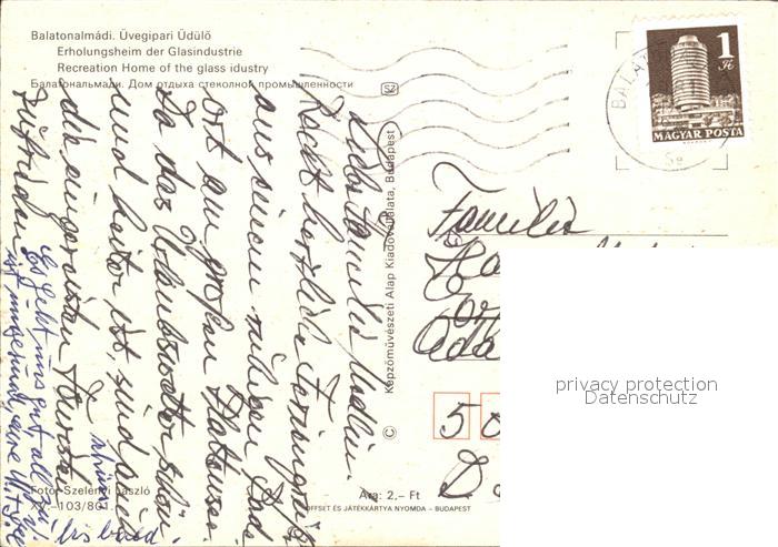 old postcard Balatonalmadi uevegipari uedueloen Erholungsheim der Glasindustrie Strand Plattensee postalisch gelaufen Erhaltung siehe scans