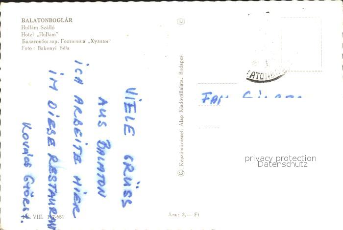 old postcard Balatonboglar Hotel Hullam postalisch gelaufen Erhaltung siehe scans