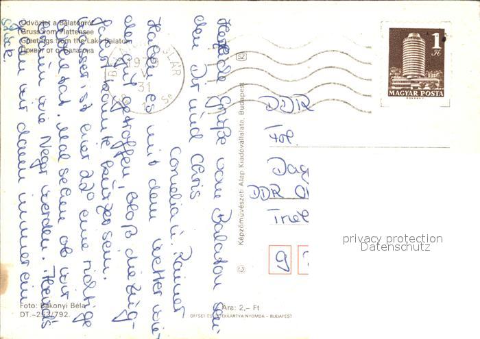 old postcard Balatonboglar Hotel Strand Statuen postalisch gelaufen Erhaltung siehe scans