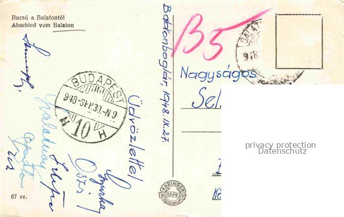 14113682 Balatonboglar HU Bucsú a Balatontól Abschied vom Balaton postalisch gelaufen Erhaltung siehe scans [FriedD77] old postcard Frie Katcode 11550