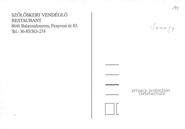 74156604 Balatonfenyves Fonyod Fuerdoe Somogy HU Szőlőskert-Vendéglő Restaurant Terrassengarten Innenraum Gaststube Dekoration Speisesaal Mehrbildkarte postalisch nicht gelaufen Erhaltung siehe scans [Karloger] KatCode: 11550