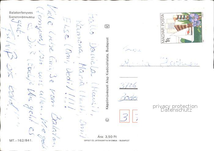 old postcard Balatonfenyves Kirche See Surfer postalisch gelaufen Erhaltung siehe scans
