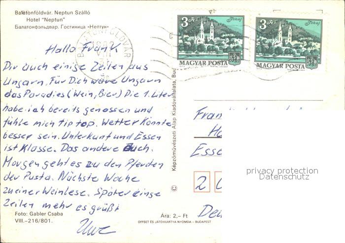 old postcard Balatonfoeldvar Hotel Neptun postalisch gelaufen Erhaltung siehe scans