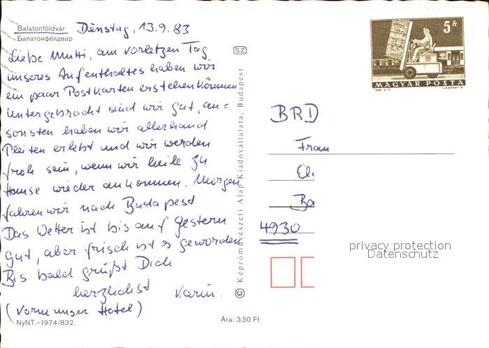 old postcard Balatonfoeldvar Hotel Plattenseepartie Park Bungalow Hafen postalisch gelaufen Erhaltung siehe scans
