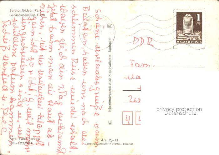 old postcard Balatonfoeldvar Park postalisch gelaufen Erhaltung siehe scans