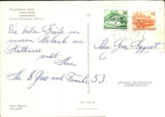 old postcard Balatonfoeldvar Sommerhotel postalisch gelaufen Erhaltung siehe scans