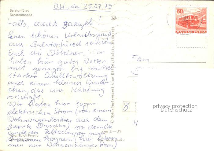 old postcard Balatonfuered Denkmal Statue Hotel Segelboot Plattensee postalisch gelaufen Erhaltung siehe scans
