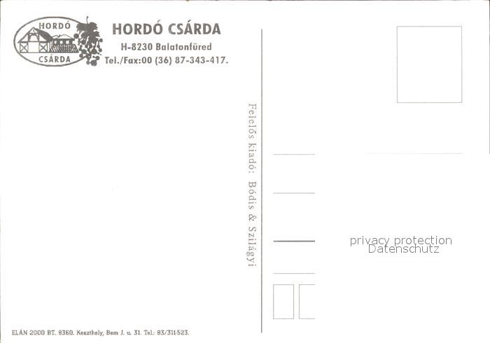 Balatonfuered Hordo Csarda Restaurant postalisch nicht gelaufen Erhaltung siehe scans