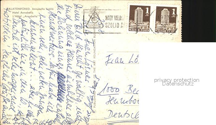 old postcard Balatonfuered hotel Annabella postalisch gelaufen Erhaltung siehe scans