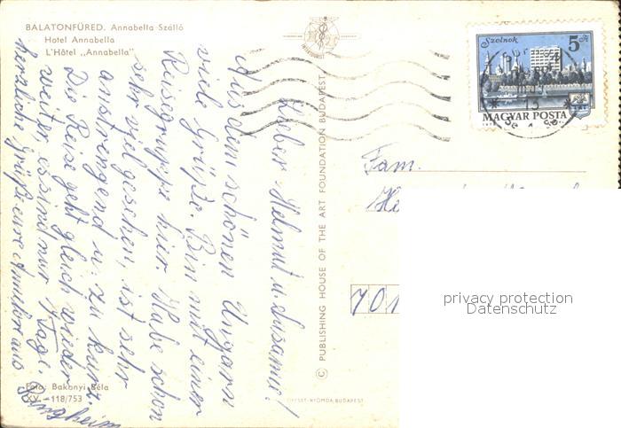 old postcard Balatonfuered Hotel Annabella postalisch gelaufen Erhaltung siehe scans