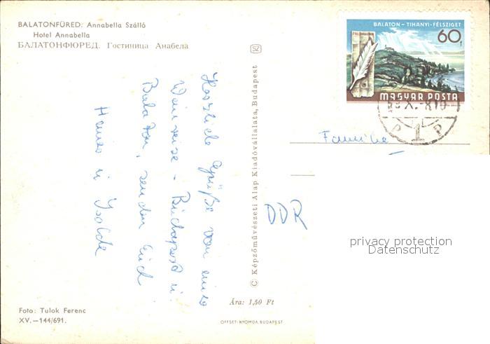 old postcard Balatonfuered Hotel Annabella postalisch gelaufen Erhaltung siehe scans