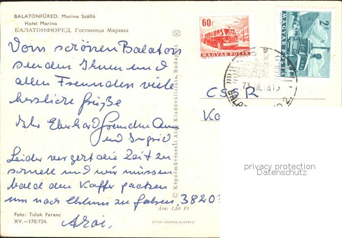 old postcard Balatonfuered Hotel Marina postalisch gelaufen Erhaltung siehe scans