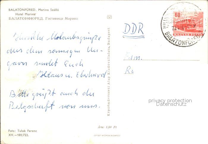 old postcard Balatonfuered Hotel Marina postalisch gelaufen
