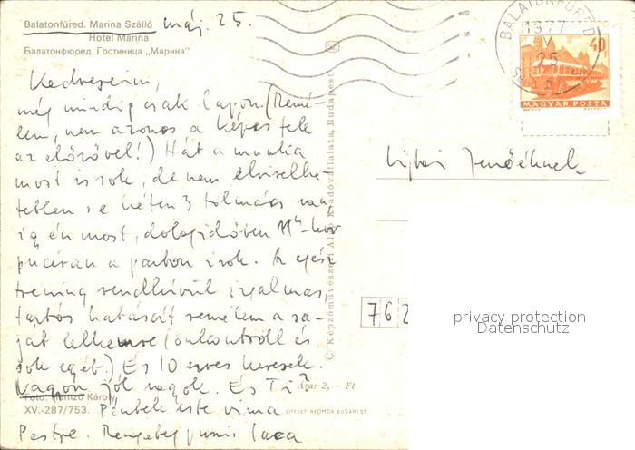 old postcard Balatonfuered Hotel Marina Windsurfer postalisch gelaufen Erhaltung siehe scans